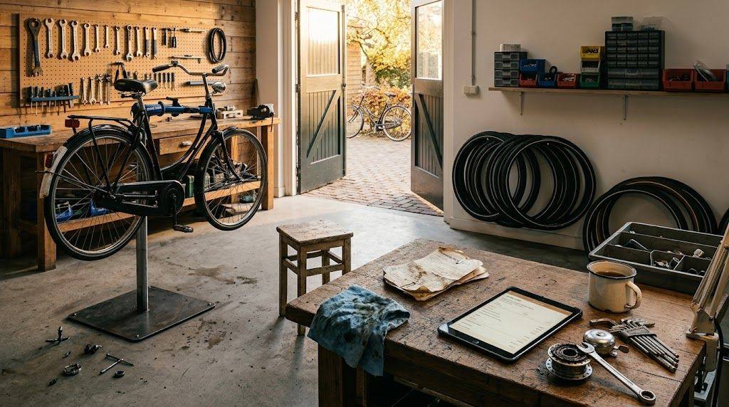 Het is woensdagochtend half tien in een gemiddelde Nederlandse fietswerkplaats. Twee monteurs zijn al begonnen, en aan de werkbank ligt een stapel van veertien papieren werkbonnen waar de ene helft niet weet welke klanten gaan worden gebeld als de fiets klaar is, en de andere helft niet weet welke onderdelen al van de leverancier kwamen. Een klant belt om te vragen of zijn fiets klaar is — zoekoperatie van vijf minuten door de stapel om de bon te vinden. Een tweede klant komt langs en blijkt al twee dagen geleden gebeld te zijn (gele post-it die in de prullenbak is gevallen). De fietshandelaar zelf is op dit moment druk met de zoveelste papieren-werkbon-uitprinten omdat de printer hapert.